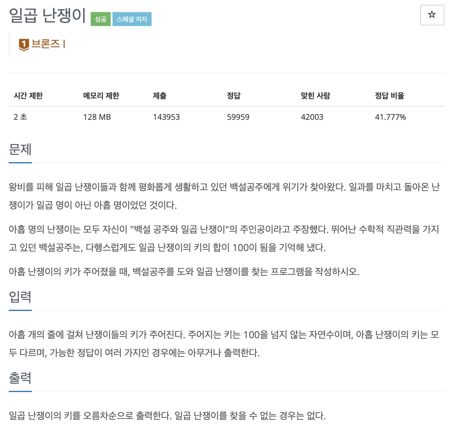 브루드 포스 기본문제인 일곱 난쟁이를 풀어보았다.