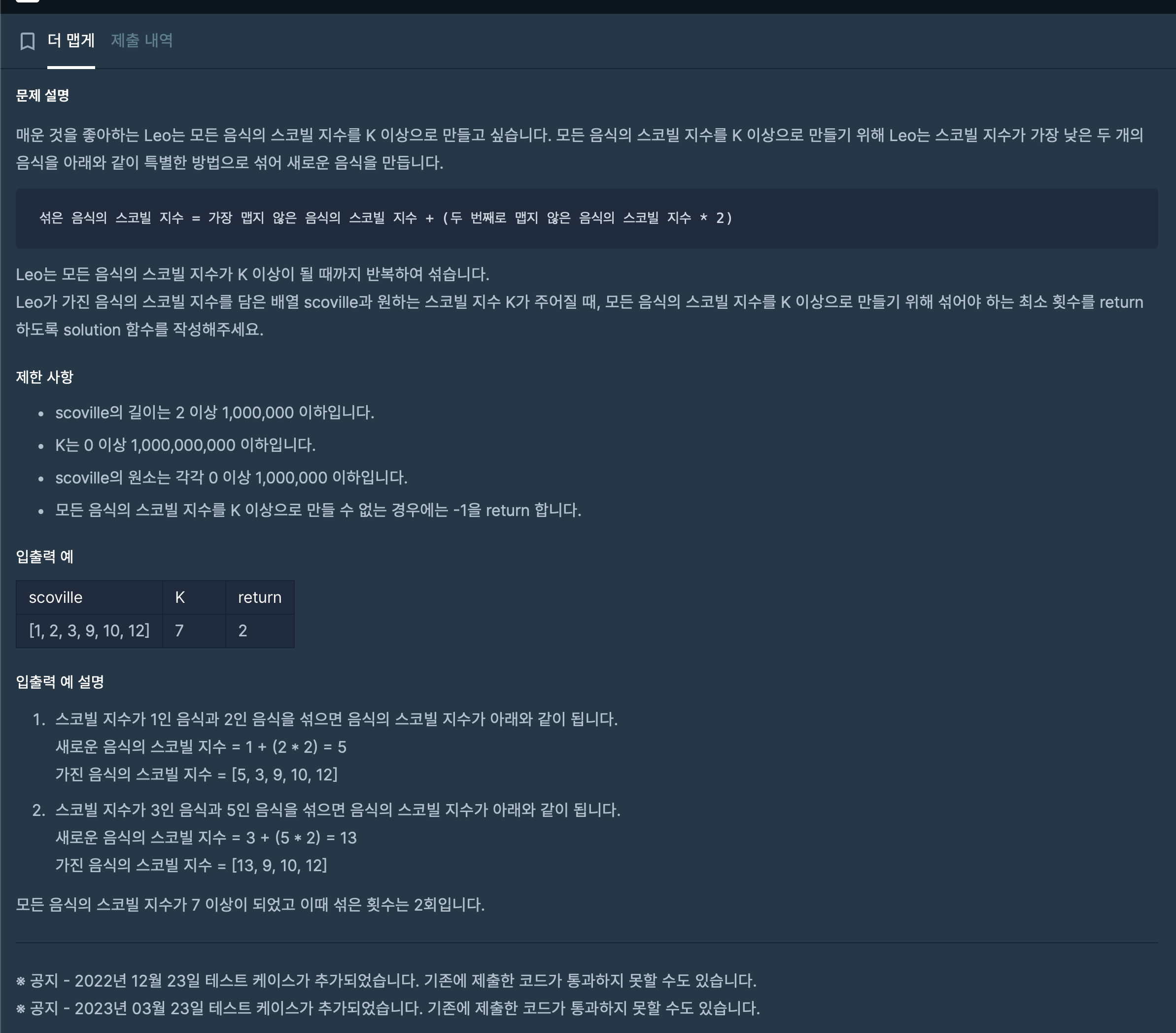 오늘 풀어볼 문제는 프로그래머스의 더 맵게입니다.